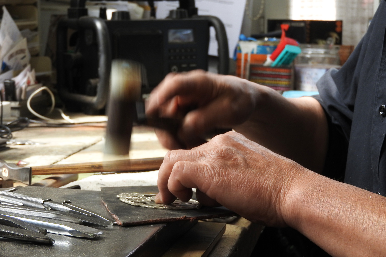 Alles wird liebevoll von Hand gefertigt: Gürtel, Hosenträger, Schuhschnallen, Hundehalsbänder, Sennenartikel und vieles mehr.
