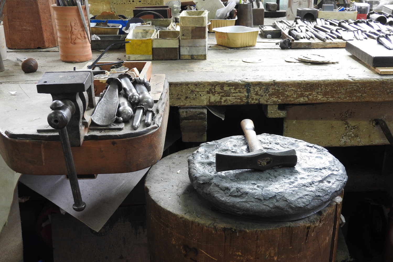 In meiner Werkstatt werden noch sämtliche Motive und Ornamente nach alter Tradition hergestellt oder restauriert. Für jeden Handgriff finden sich die entsprechenden Werkzeuge. Skizzen, Zeichnungen, Modelle entstehen und bilden die Grundlage zur fachgerechten Umsetzung.